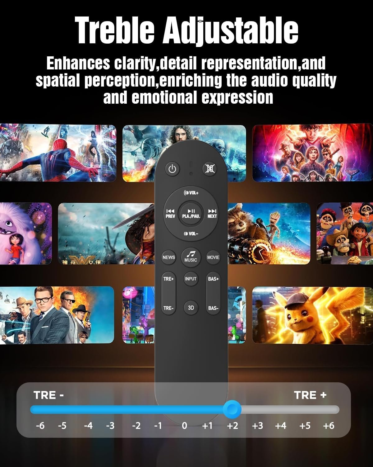 Controllo Completo: Telecomando per regolare bassi, alti e suono surround.